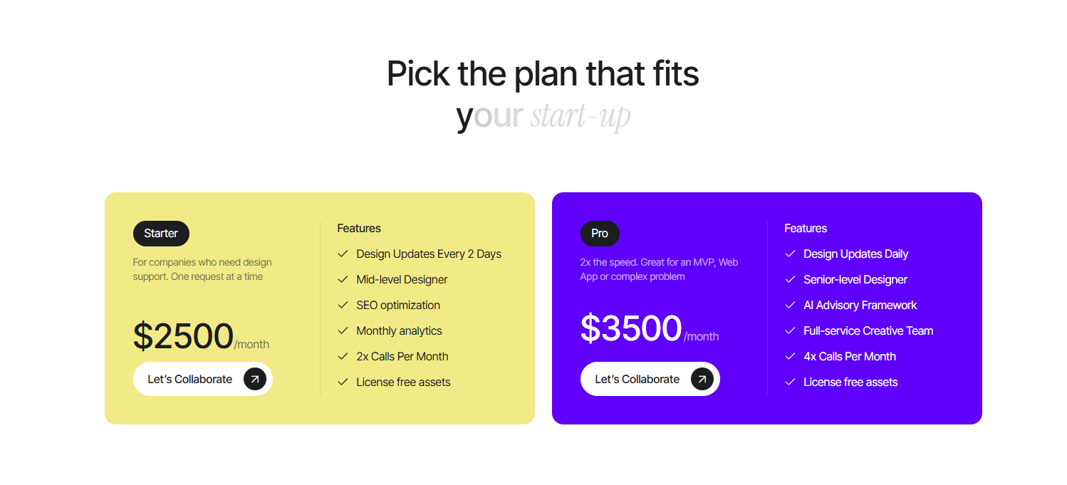 More Pricing Plan Landing pages